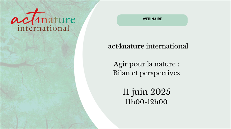 Dans le cadre du lancement du bilan 2024 des engagements act4nature international, ce webinaire présente les enseignements de cet exercice, tant pour les entreprises que pour l’initiative elle-même. Ce temps d’échange a mis en lumière la valeur ajoutée du dispositif act4nature, qui repose sur la prise d’engagements concrets, SMART et volontairement portés par les entreprises en faveur de la biodiversité.